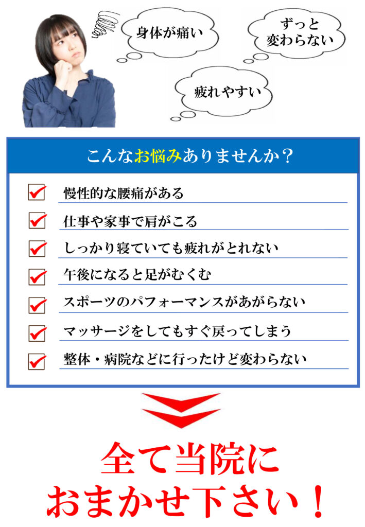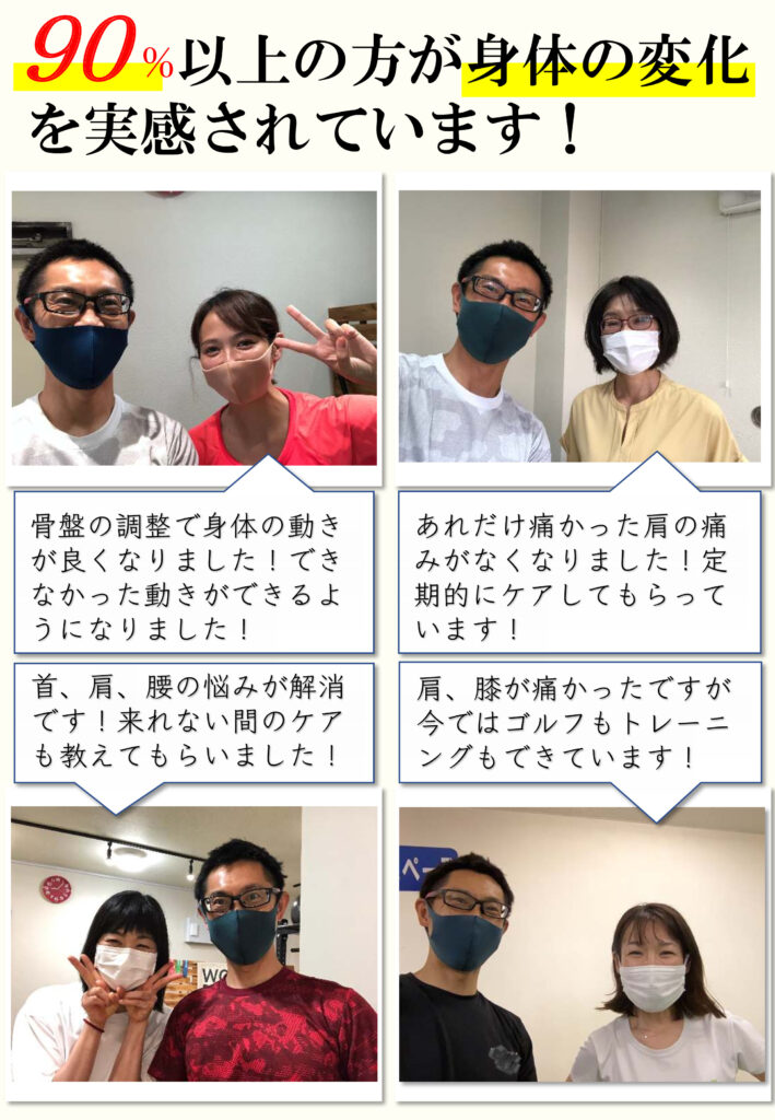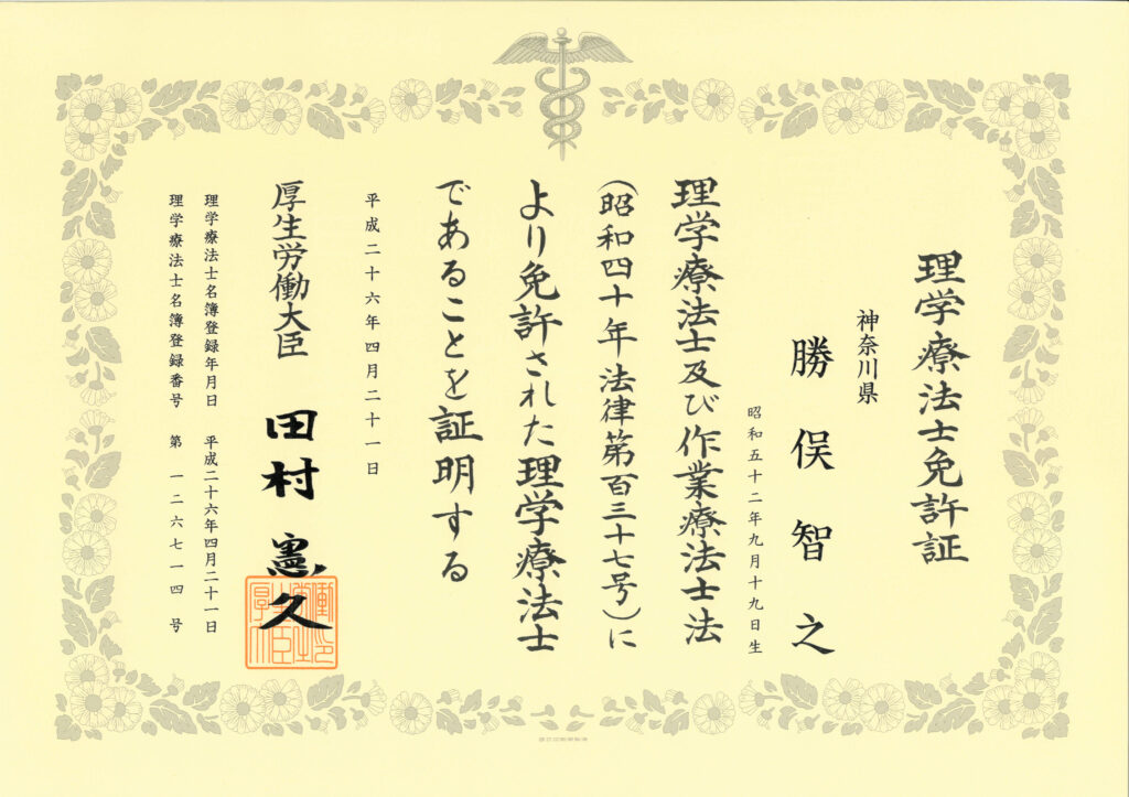 当院のスタッフは医療系国家資格を保有しております。代表は理学療法士を保有しており、整形外科での経験も豊富です。一般的な整体は資格を保有していても「国家資格」ではありません。国家資格は国が定めた厳しいカリュラムをクリアしないと取得することはできません。いわば「国が認めた医療系のスペシャリスト」です。他院とは違う見方、アプローチ方法があります。安心してお越しください。